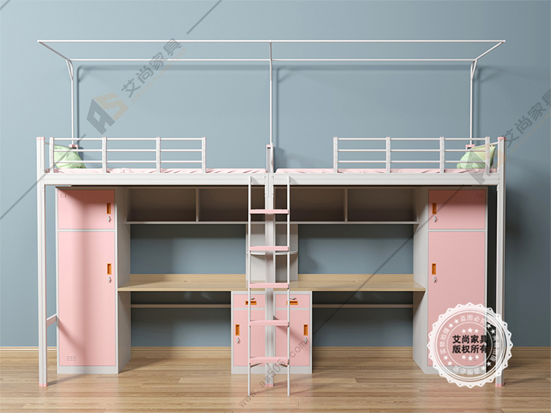 粉色少女心系列,這款學生公寓床是專為女學生而設計,采用粉色為主色調,深得校園女生喜愛,適用大學、四人間-6人間宿舍