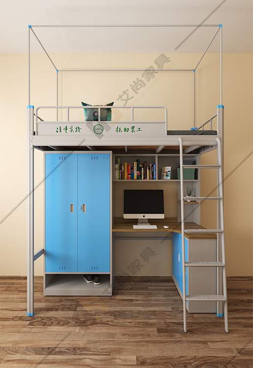 2.長2米,寬1米,高1.7米。 這種學生公寓床是在兩人或者四人高檔公寓常見,一個人獨自享受整個床的區域。上面是睡床,下面則加了一個書桌,平時學習方便。顏色明亮,材質也多鋼。