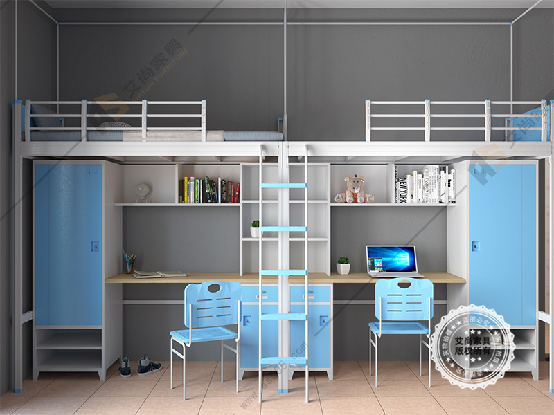 學生宿舍上下床一般尺寸是:W1980*D900*H1750(mm),也看具體的學生公寓,例如上床下桌的形式,標準尺寸為:W2530*D900*H2100(mm)。