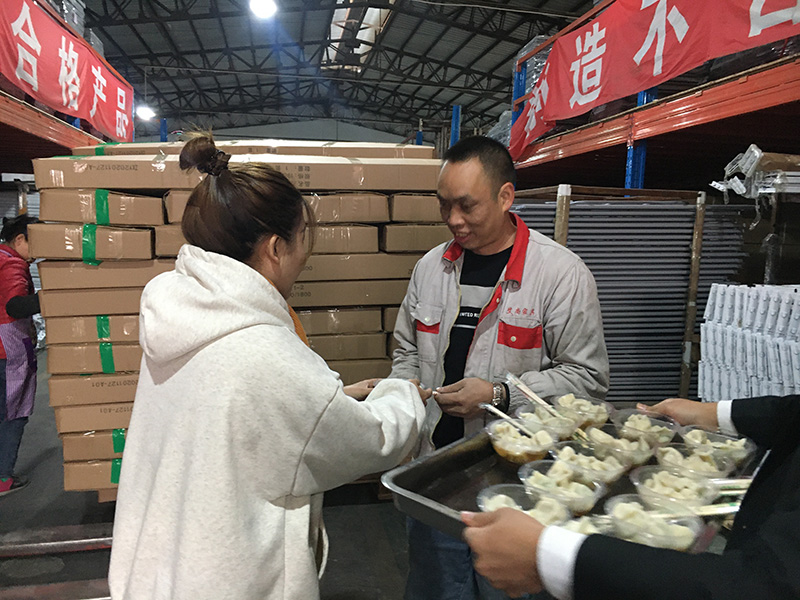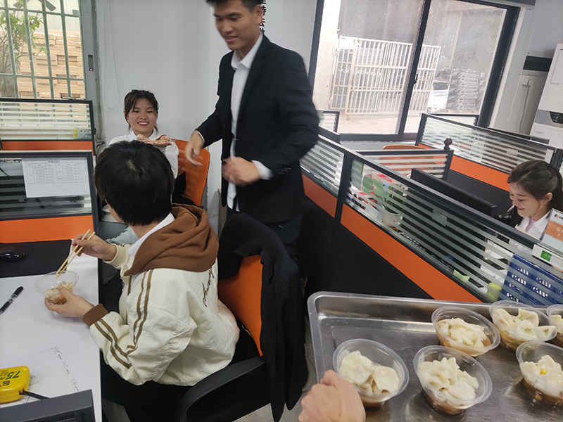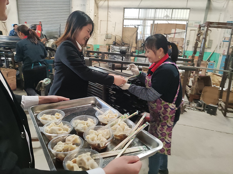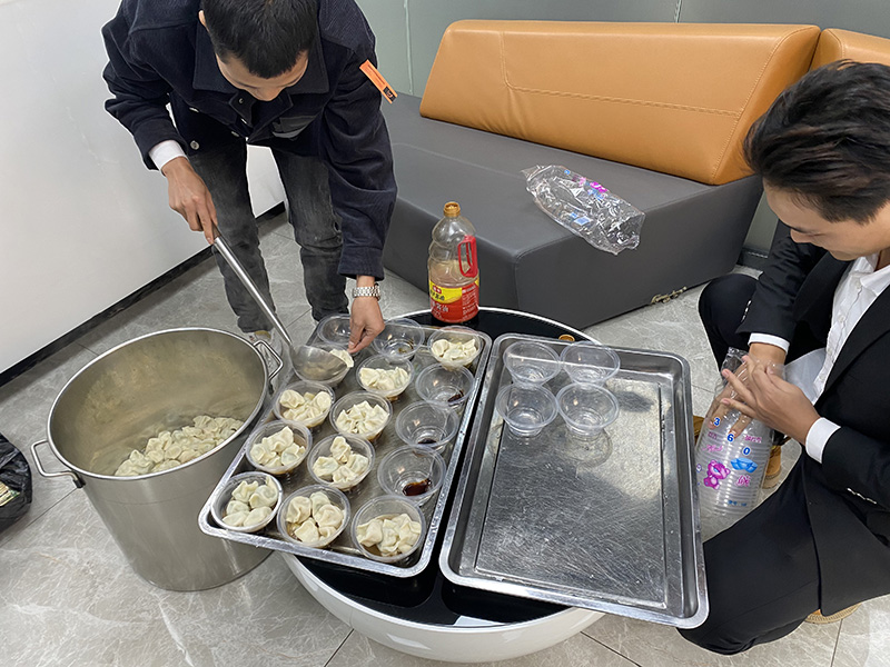 12月21日下午,為了讓員工們冬至吃上餃子,老板娘在前兩天采購(gòu)了充足的肉餡、蔬菜、調(diào)料、面等食材,連續(xù)包了兩天的餃子,今天中午送到公司。