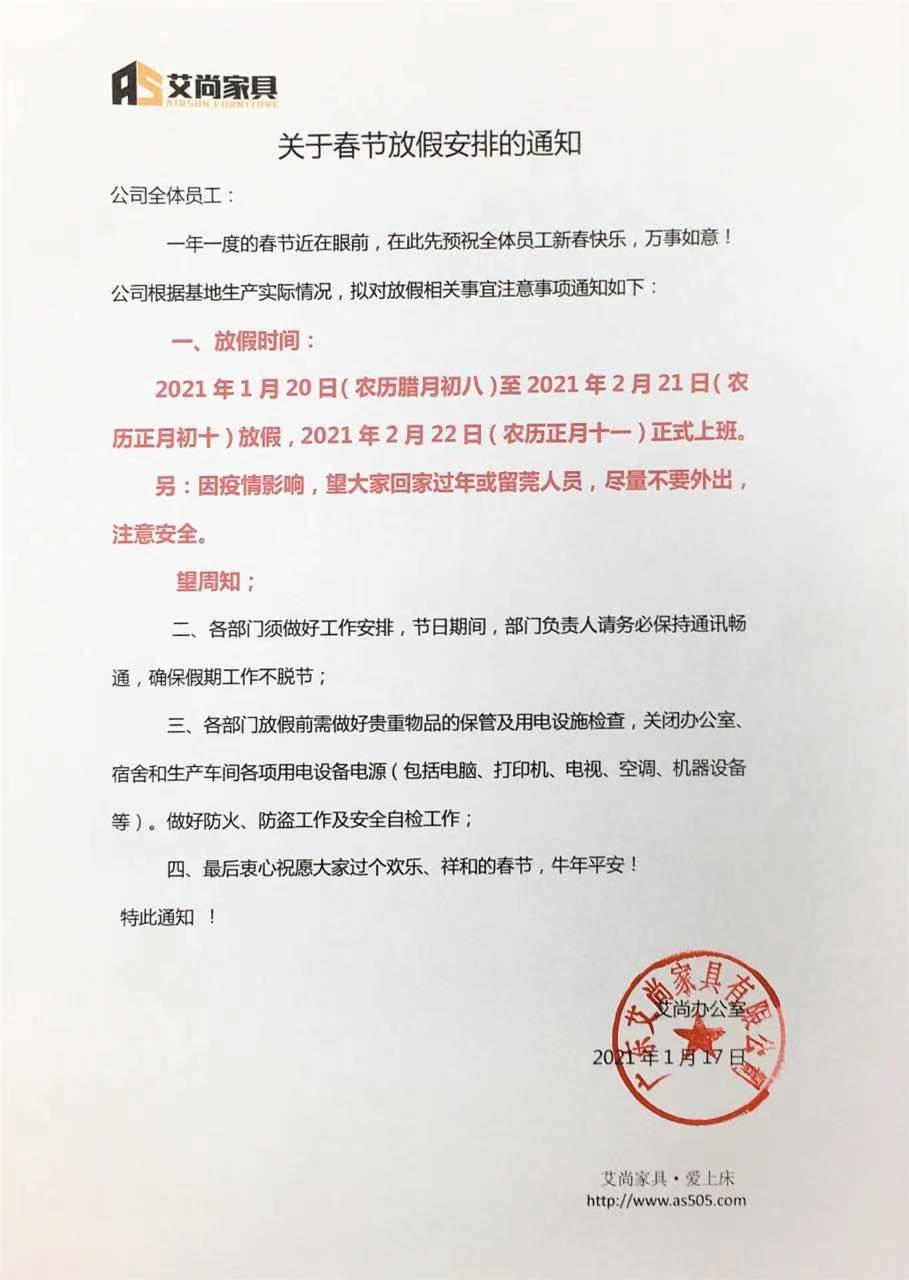 關于春節放假的通知!