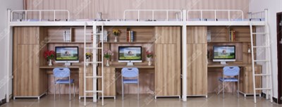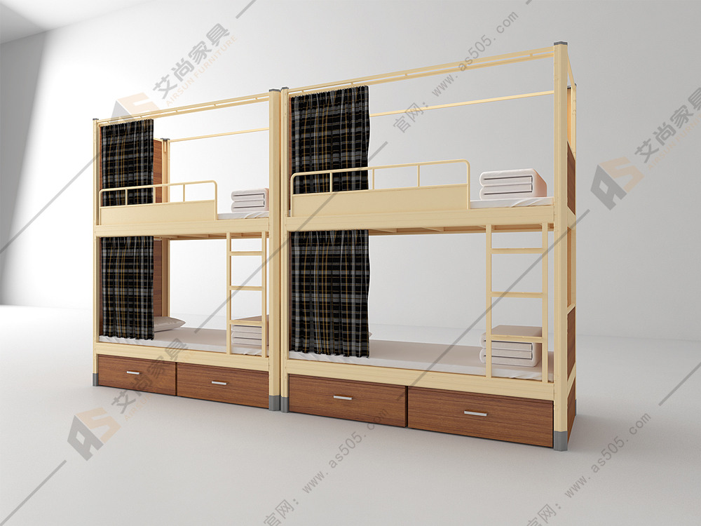 艾尚家具這款宿舍家具床材質全部采用冷軋鋼板壓鑄而成的中控異型材,床體采用卡扣式連接,經過酸洗磷化、高溫烤漆不易生銹,后期也沒有異味,全圍護欄,無螺絲,全拆裝。衣柜里面可以把衣服疊起來放著也可以掛起來。