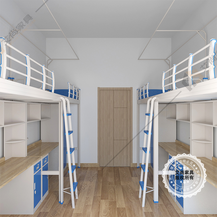 足夠牢固安全的前提下艾尚家具所生產的學生宿舍床還附帶了許多人性化的設計,235mm加高護欄,樓梯附有防滑紋,可根據要求增添置物柜或蚊帳架等額外設計,確保用戶在使用學生宿舍床的時候安心舒心。