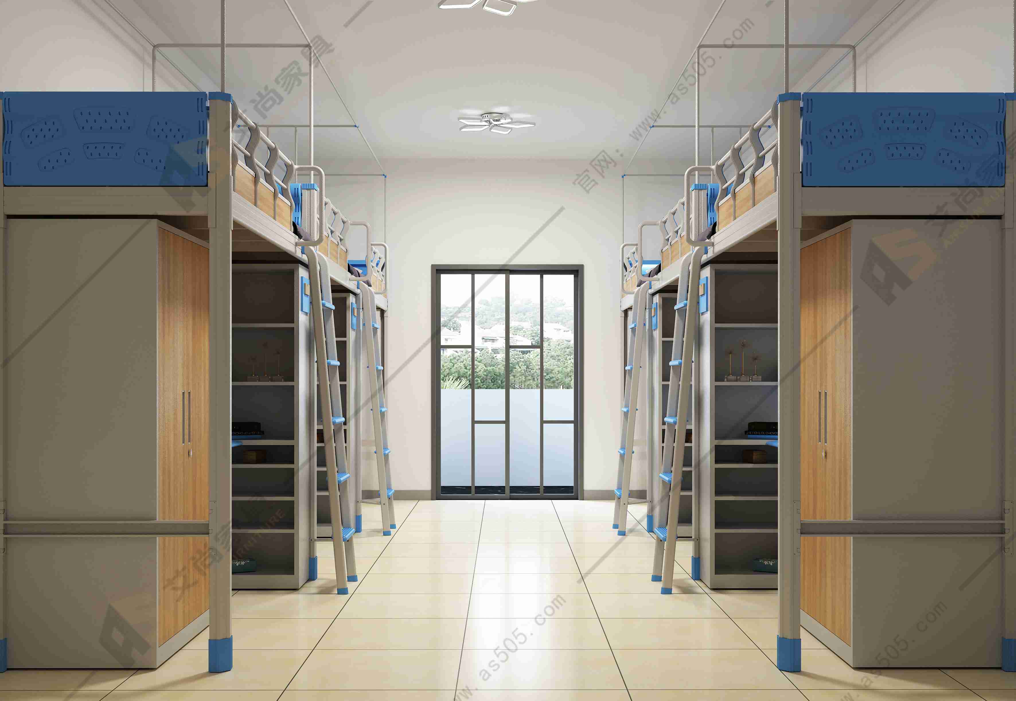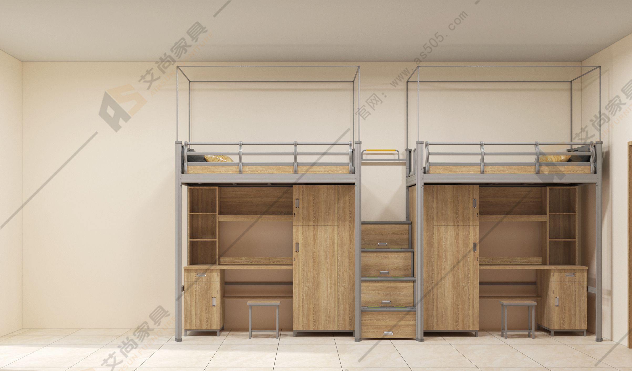 雙層公寓床的優點就是空間利用率大,日常用品的堆積也會讓宿舍更加擁擠,雙層公寓床可以定制衣柜、儲物柜、書柜等給學生放置生活物品,并可以定制密碼鎖,指紋鎖將降低學生財產安quan的風險。