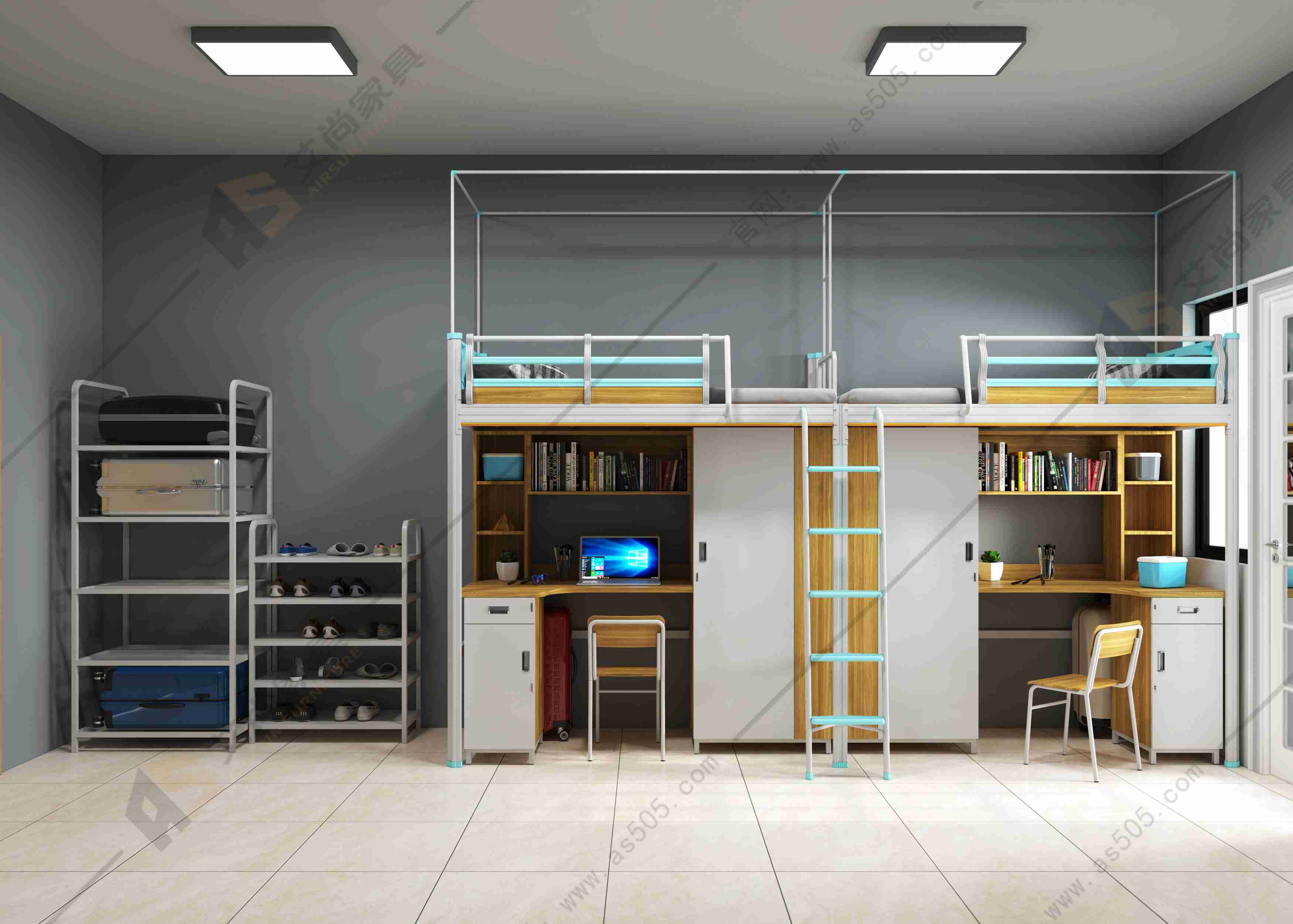 學生公寓床是宿舍床的多種類型之一。廣泛應用于學校、企事業單位等集體宿舍。學生公寓床通常采用床與柜的組合,一般包括床、書柜、衣柜、書桌等宿舍家具。書桌把書柜和衣柜連在一起。整體為立體空間組合,既節省空間,又整潔美觀。梯子在書架的一邊。梯子分為側梯、中梯和內梯,梯子的選擇可以根據實際空間距離及預算按需定制。