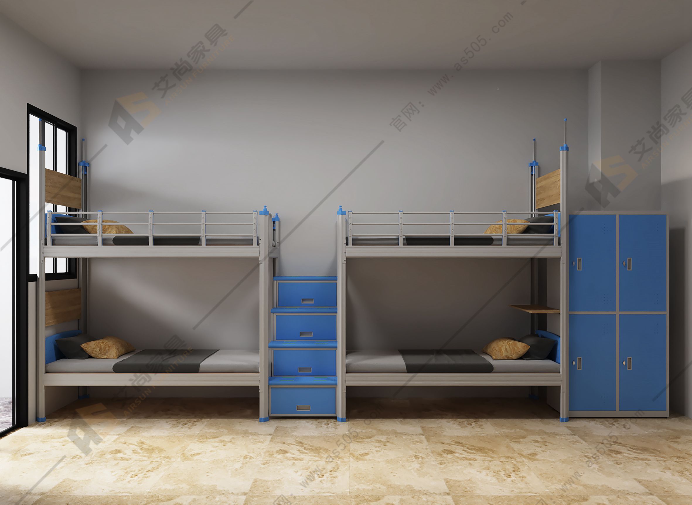 艾尚家具員工宿舍床設計以簡為主,卡扣式結構更美觀。還配有配套產品、書柜、鞋柜、衣柜、書桌等。衣柜是由鋼和木頭制成的,環保耐用無異味,讓宿舍生活更加便捷。