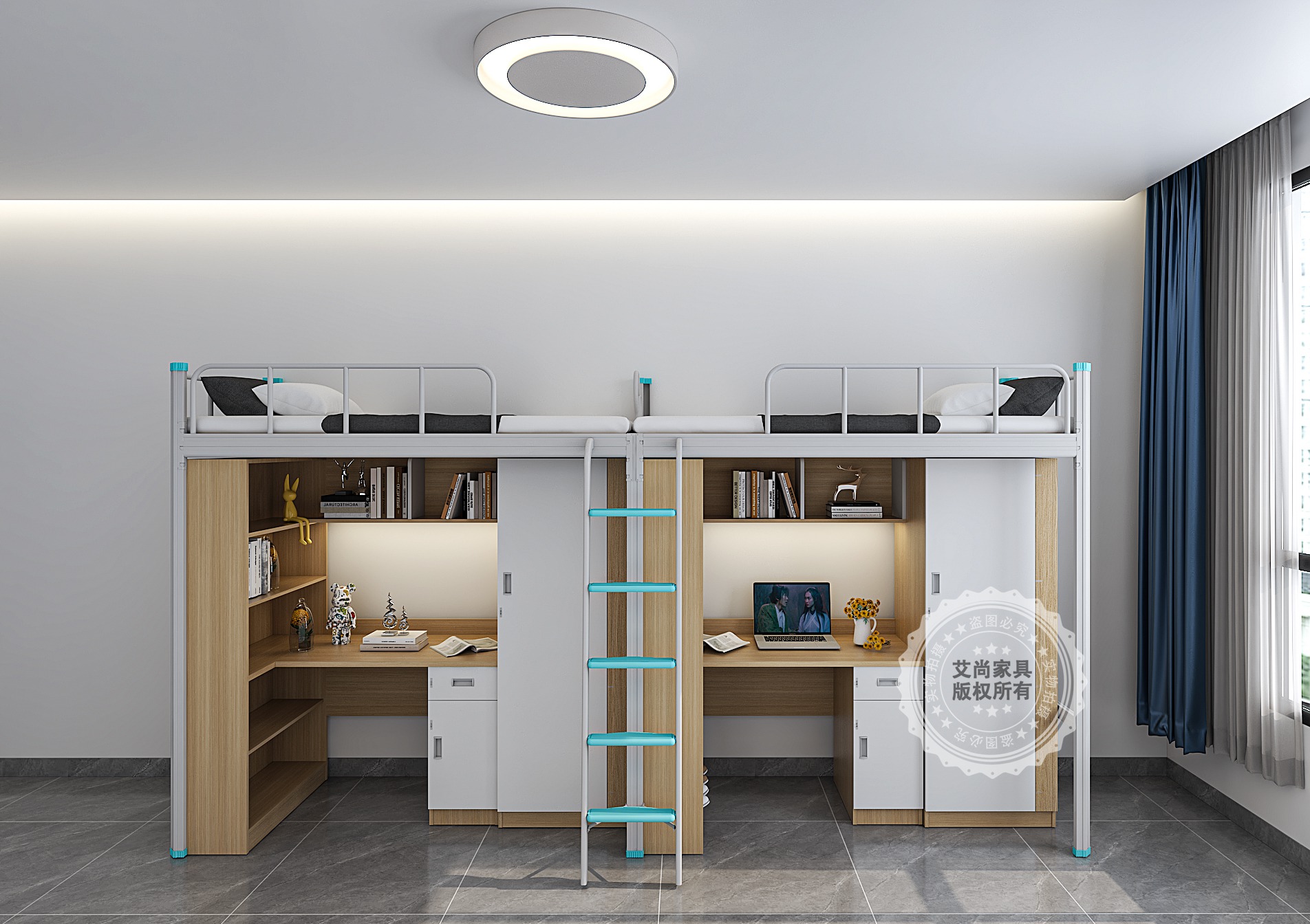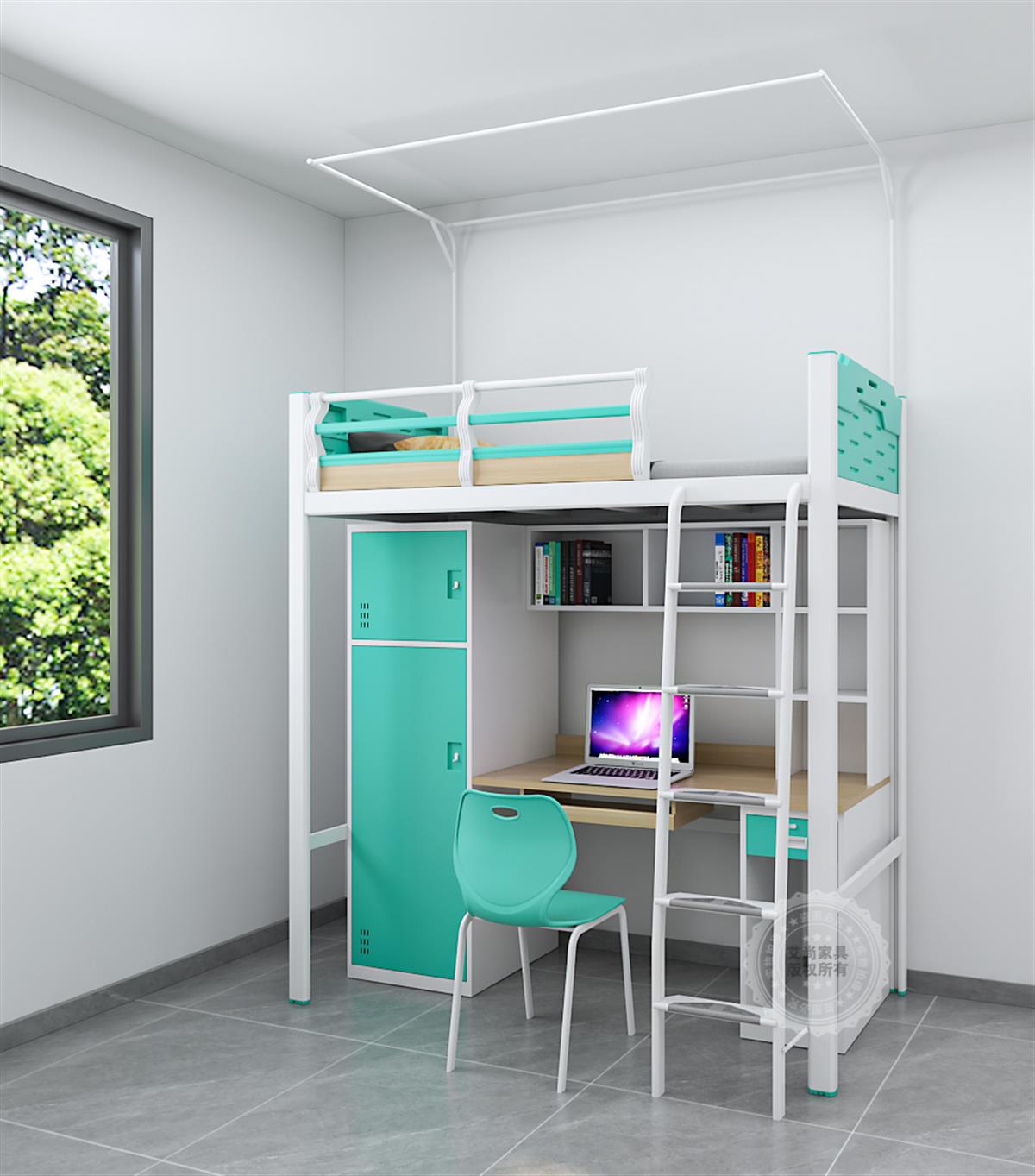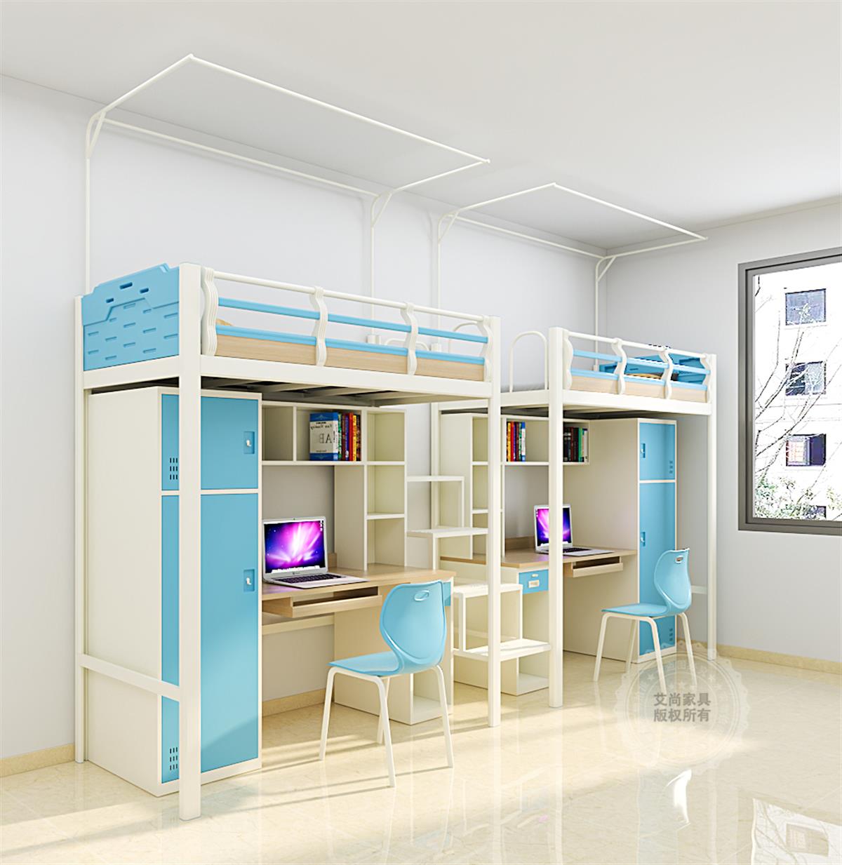 學生宿舍空間有限,而公寓床堪稱空間利用的 “魔法師”。它打破傳統床鋪僅滿足睡眠的單一功能,將垂直空間運用到極致。常見的上床下桌式公寓床,上層是靜謐的睡眠區,下層巧妙組合書桌、衣柜與儲物柜,學習、收納、休息功能三合一,完美解決小空間的居住難題。艾尚公寓床,書桌側邊配備多層收納格,零碎物品、行李箱都能找到安身之處,讓宿舍告別雜亂,始終保持整潔有序。