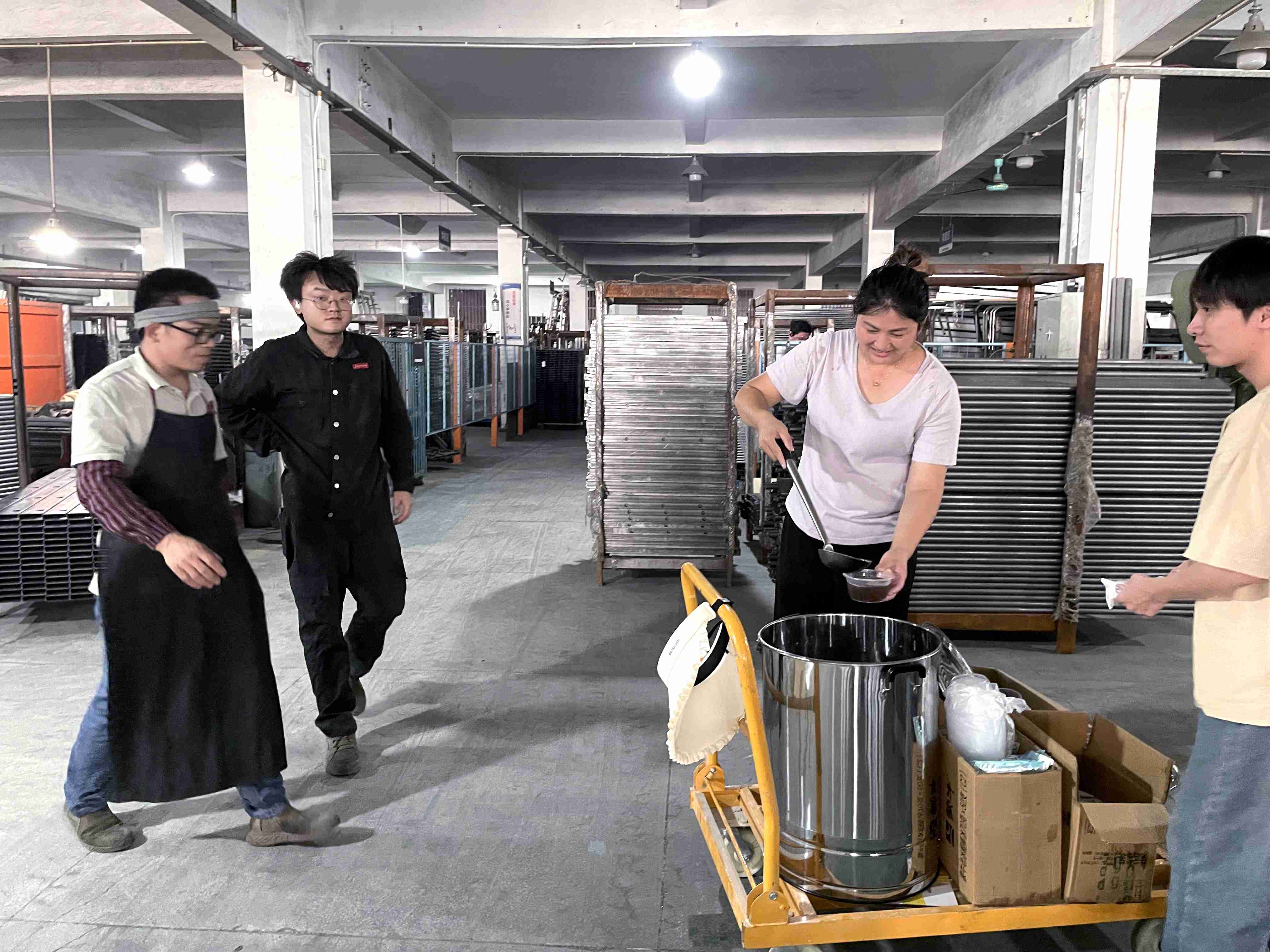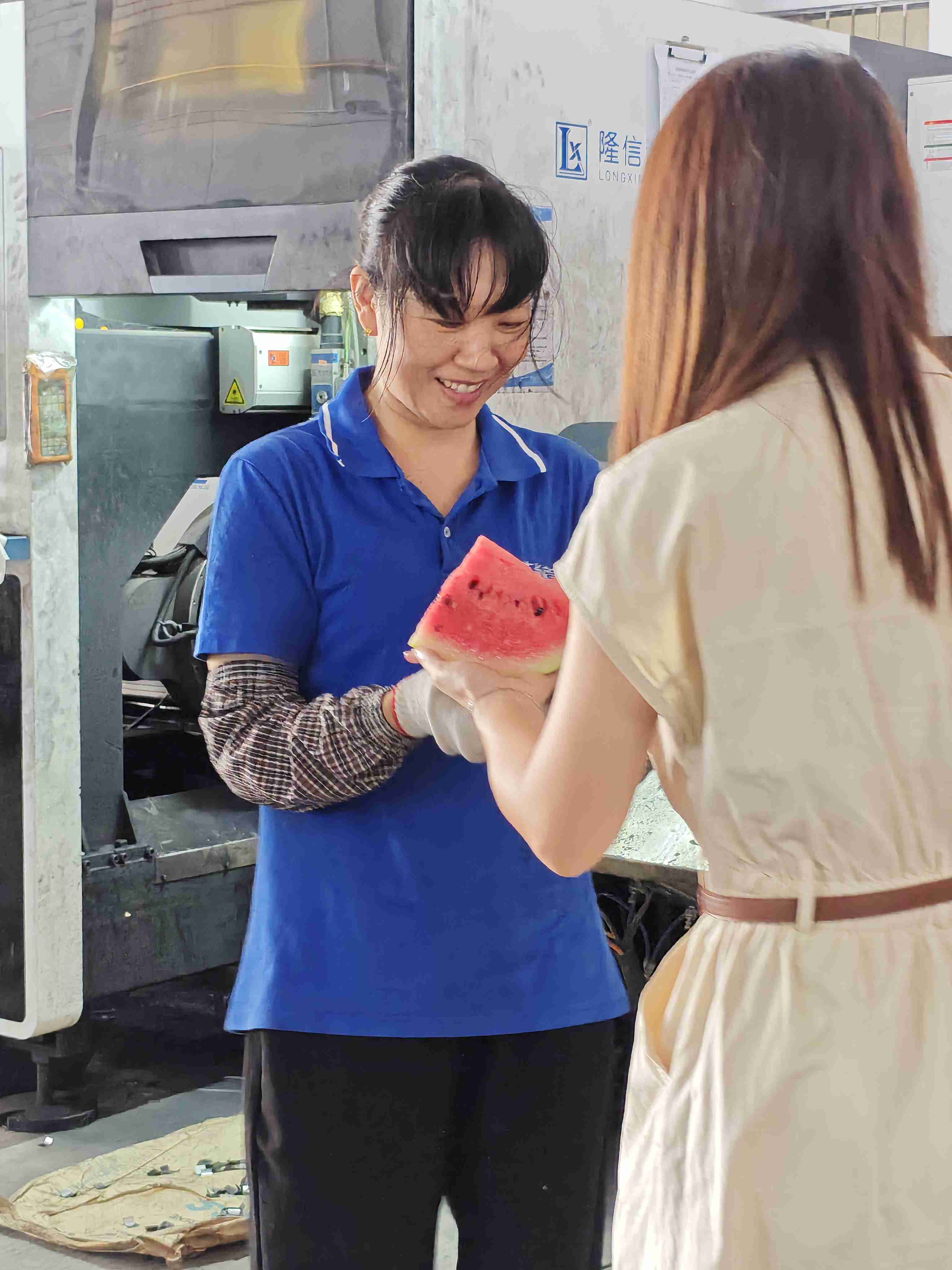 盛夏的廣東烈日炎炎,廣東艾尚家具有限公司車間內,工人們頂著高溫忙碌,汗水見證著他們的堅守。為給大家解暑,公司特意準備了清甜的綠豆湯和冰鎮西瓜。