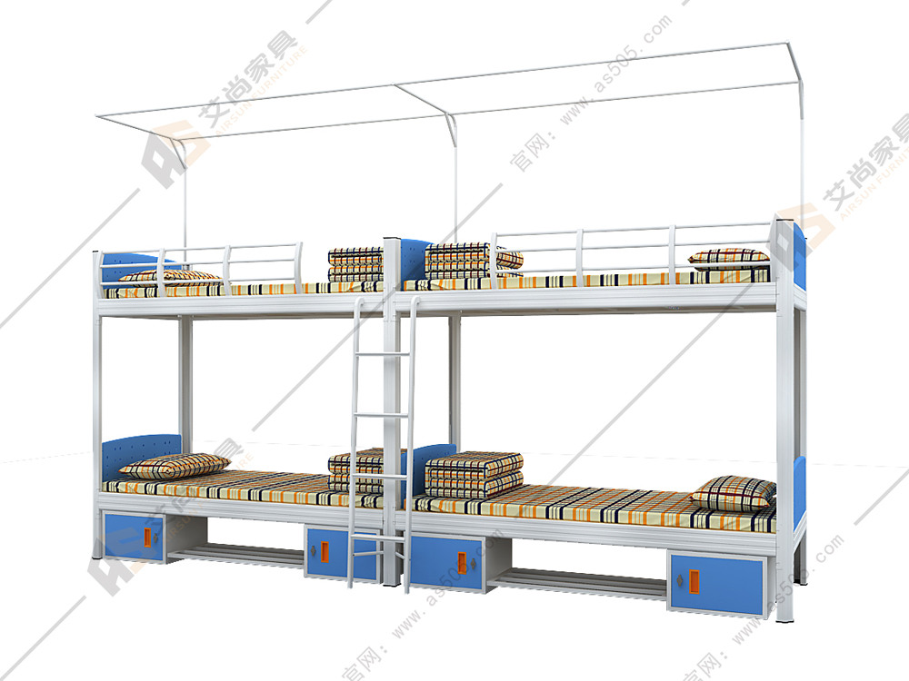 艾尚家具的宿舍家具都是可定制的,如果需要定制的客戶我們會有專門的人員去到現場測量房間尺寸,每測量一處都會與相關負責人員及時說出設計想法,也會一起討論,盡量做到客戶滿意。艾尚家具宿舍床是全冷軋鋼制造的!連接方式是卡式連接,不加螺絲,無噪音!如果客戶需要我們也有配套的衣柜、鞋柜、床頭柜、辦公桌、椅子、床墊還有床板,這些都是客戶自由選擇搭配的,多種款式,花樣配套!