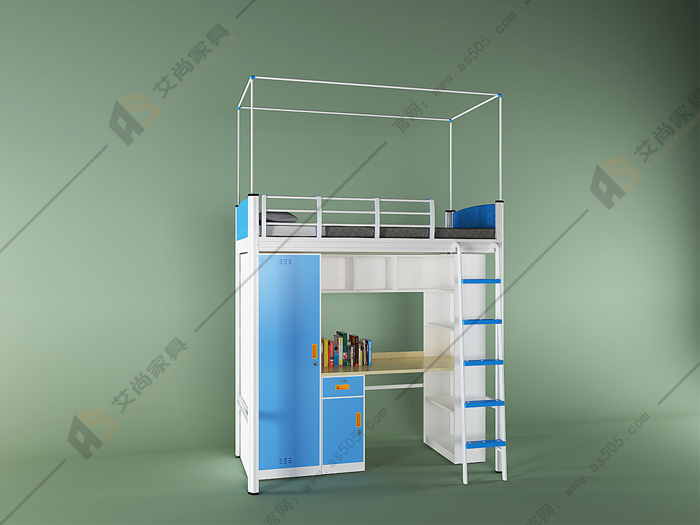 單體側梯公寓床:樓梯需要攀爬,床頭可佩帶塑膠床板,側護欄可定制木擋板,圓弧形護欄等。樓梯也可安裝塑膠踏板,下面的書桌自由搭配,可自行采購,也可在我們這里的采購鋼制木質鋼木結合都可。