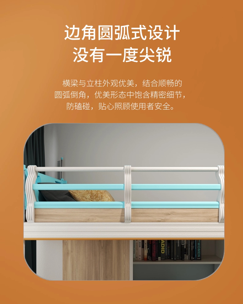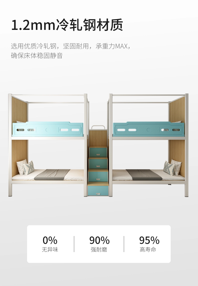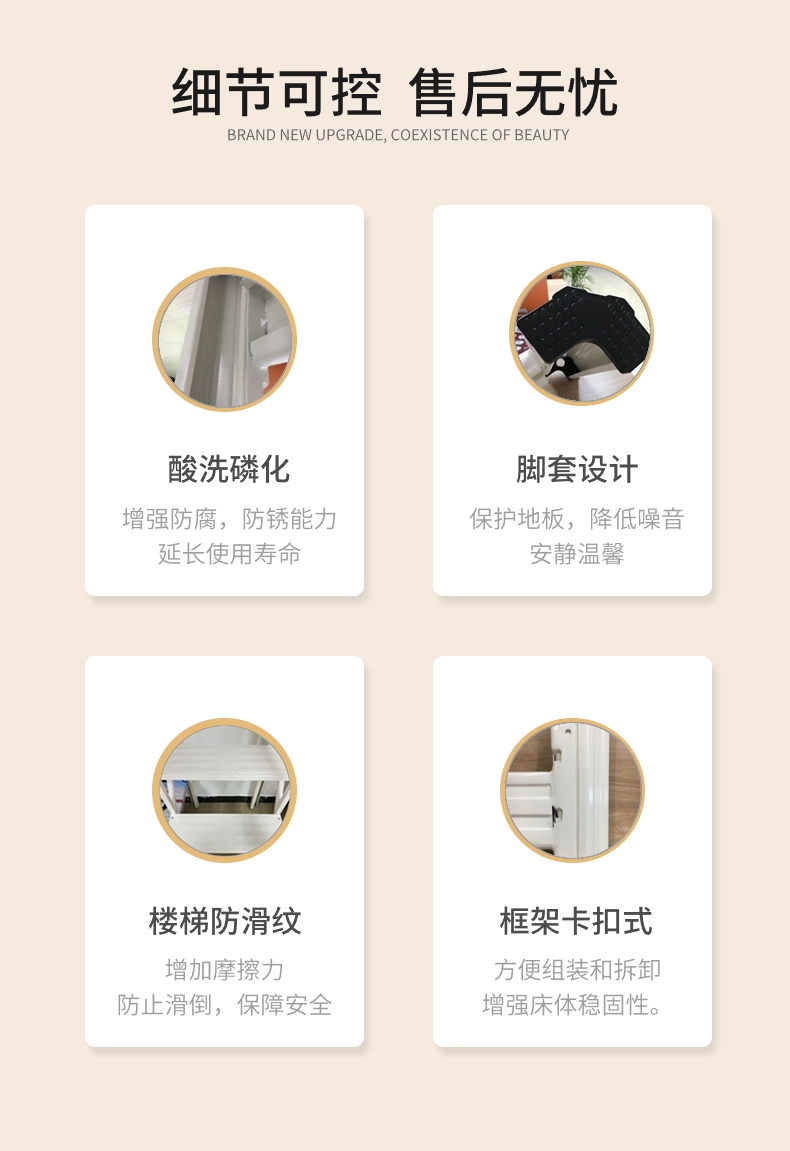 床架結構穩固不易變形,承重力好,床體承重力達500KG 根據人體工程學設計,上下舒適自如!