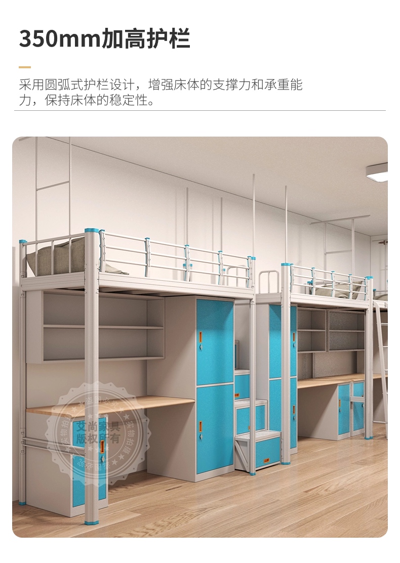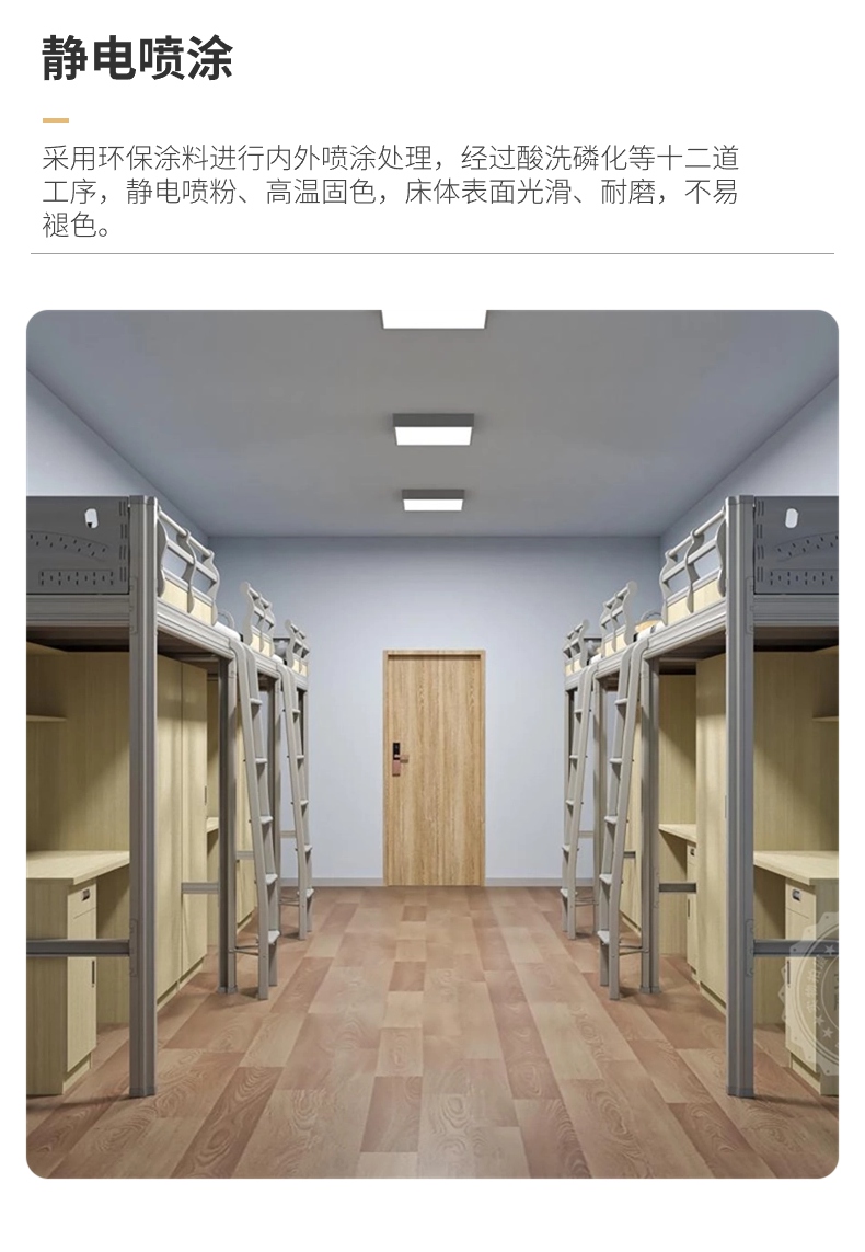 產品介紹: (尺寸可根據客戶要求定制),本產品顏色使用白色(顏色可按照客戶喜好定制),原材料使用1.2mm冷軋鋼板,床體承重500-1000kg,產品采用紙箱包裝防止運輸途中磨損,產品適用范圍企業、單位、學校8人間宿舍均可適用。 本產品廠家質保十年!