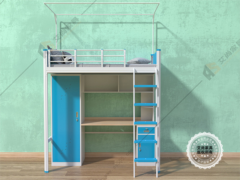 產品介紹: 單體側梯公寓單人床,常規尺寸1980長*900寬*2100高mm(尺寸可根據客戶要求定制),本產品顏色使用藍色、米白色(顏色可按照客戶喜好定制),原材料使用1.2mm冷軋鋼板,產品采用紙箱包裝防止運輸途中磨損,產品適用范圍企業、單位、工廠1-4人間宿舍均可適用。 本產品廠家質保十年!