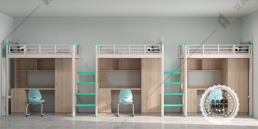 產品介紹: 艾尚家具大學生宿舍公寓床外觀上高端大氣,并且安全舒適。大學生宿舍公寓床采用環保0甲醛烤漆,無論悶熱潮濕都恍然如新。 廣東艾尚家具的推出公寓床都是采用無螺絲卡扣式銜接設計,利用重力向下,床架間的卡扣掛件就會向下與床架卡的越緊,用得越久越牢固,款式尺寸可以根據客戶需求或宿舍空間專屬定制。