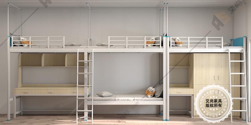 產品介紹: 艾尚家具學生連體公寓床外觀上高端大氣,并且安全舒適。采用環保0甲醛烤漆,無論悶熱潮濕都恍然如新。 做工設計上,南雄公寓床采用卡口式連接,這種連接的優點在于承重性強,穩固性好,上床時非常平穩,不易搖晃,安全舒適。